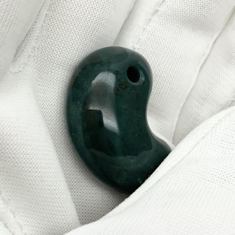 希少な碧緑色の原石から生み出された勾玉は、色も地模様も様々。